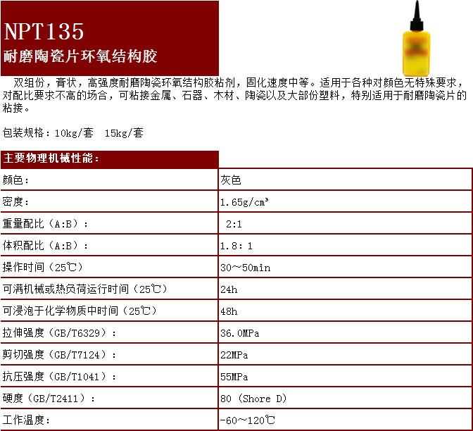 NPT135耐磨陶瓷片環(huán)氧結(jié)構(gòu)膠