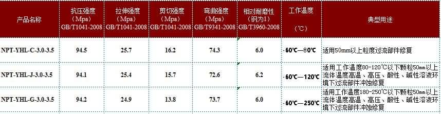 雙組分,以陶瓷顆粒及復(fù)合陶瓷顆粒、金屬碳化物為骨材與PDMG預(yù)聚體為基礎(chǔ)的耐磨復(fù)合材料,具有耐水、耐油、耐酸堿性。適用(-60℃-80℃)設(shè)備過流沖蝕、設(shè)備的大面積修復(fù)、設(shè)備預(yù)涂耐磨層,如旋流器、浮選柱、浮選機、泡沫槽、分級機、攪拌桶、溜槽、管件類、泵類等修復(fù)(典型用途見主要物理機械性能表)。